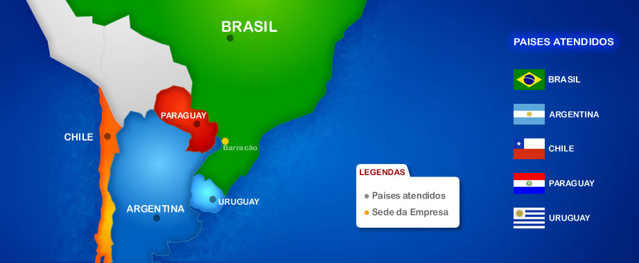 Veja no mapa abaixo a lista de países em que nossa empresa atua:
